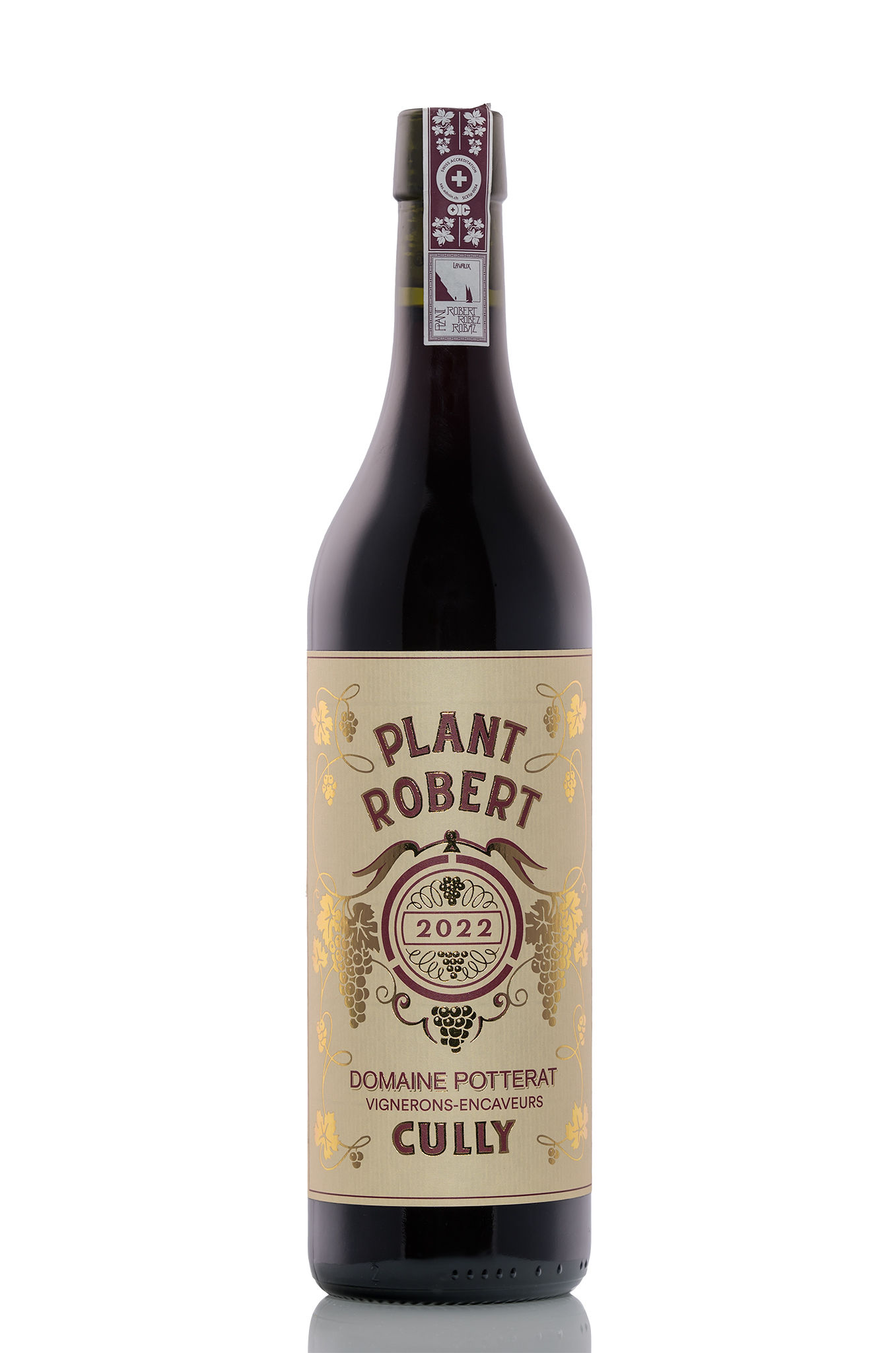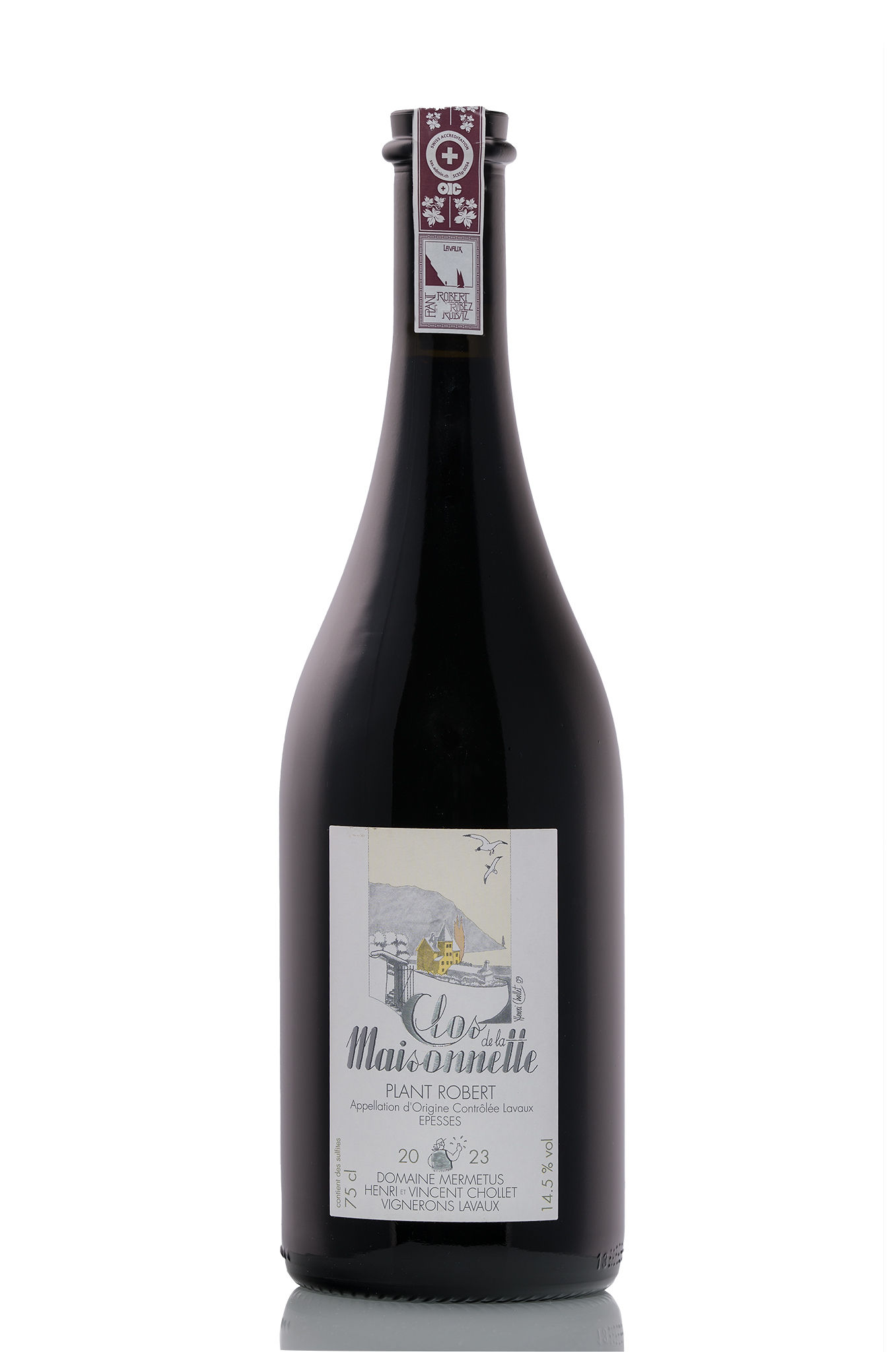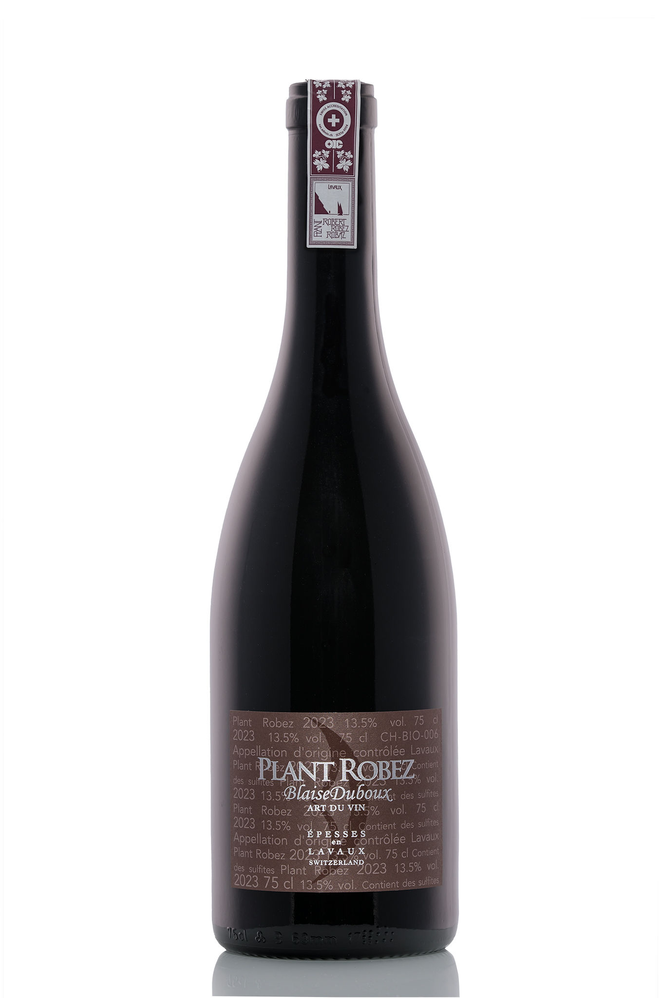 Juché sur les hauteurs du vignoble de Lavaux, classé en 2007 au patrimoine mondial de l’UNESCO, notre domaine familial s’étend entre ciel et lac. Notre cave surplombe ce magnifique paysage et c’est là que nous élevons nos crus avec le plus grand soin. Très peu mécanisé, nous cultivons nos vignes selon des méthodes respectueuses de l’environnement (production intégrée). La récolte est ensuite élevée et mise en bouteilles à la propriété. C’est dans ce cadre que nous mettons en valeur le cépage Plant Robert sur 3 différentes petites parcelles au terroir différent.L’élevage du vin se fait ensuite dans des doubles barriques de 500 litres.Ainsi ce cru révèle toute sa personnalité, son caractère légèrement sauvage et épicé.